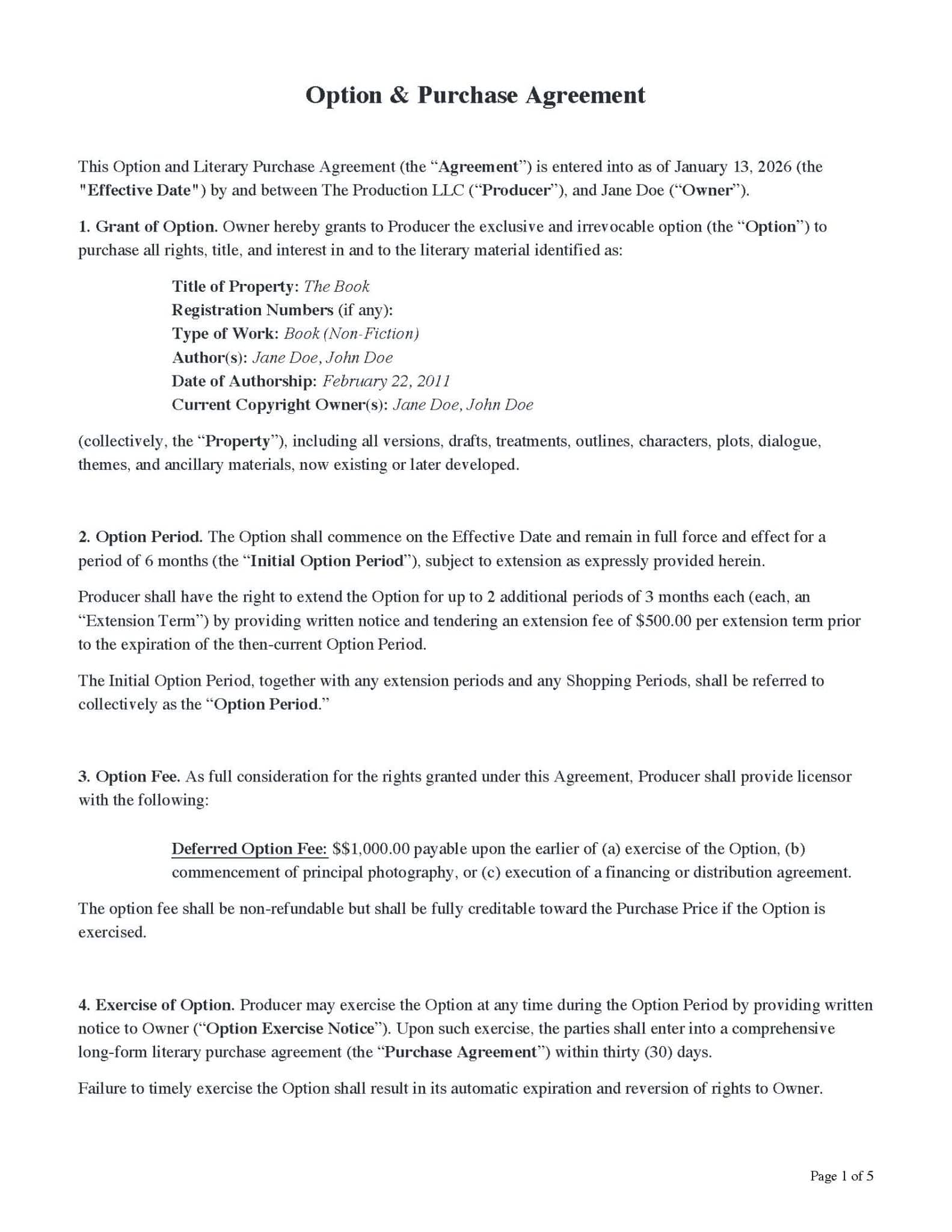 It’s a contract granting a producer the exclusive right to purchase intellectual property (scripts, books, articles, or life rights) for development and production.